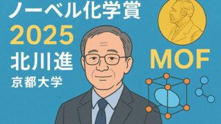 工業 北川進(京都大学)ノーベル化学賞受賞の理由を解説|MOF(金属有機構造体)のすごさを初心者にもわかりやすく! 2025年のノーベル化学賞は、京都大学の北川進(きたがわ すすむ)氏が受賞しました。受賞理由は、金属と有機分子を組み合わせて作る「金属有機構造体(MOF)」という新しい素材の発見と開発です。 MOFは、目には見えないほど小さ... 2025.10.13 工業